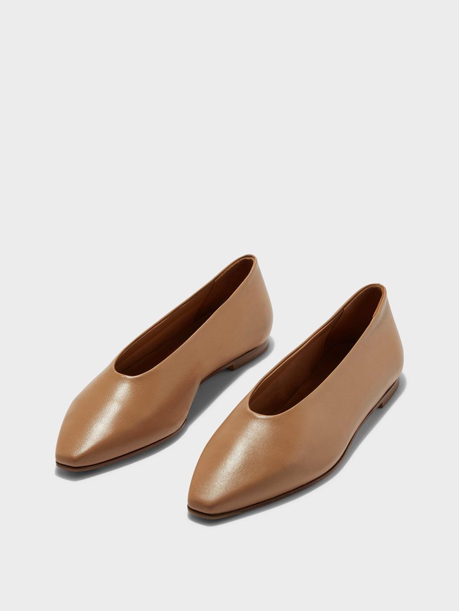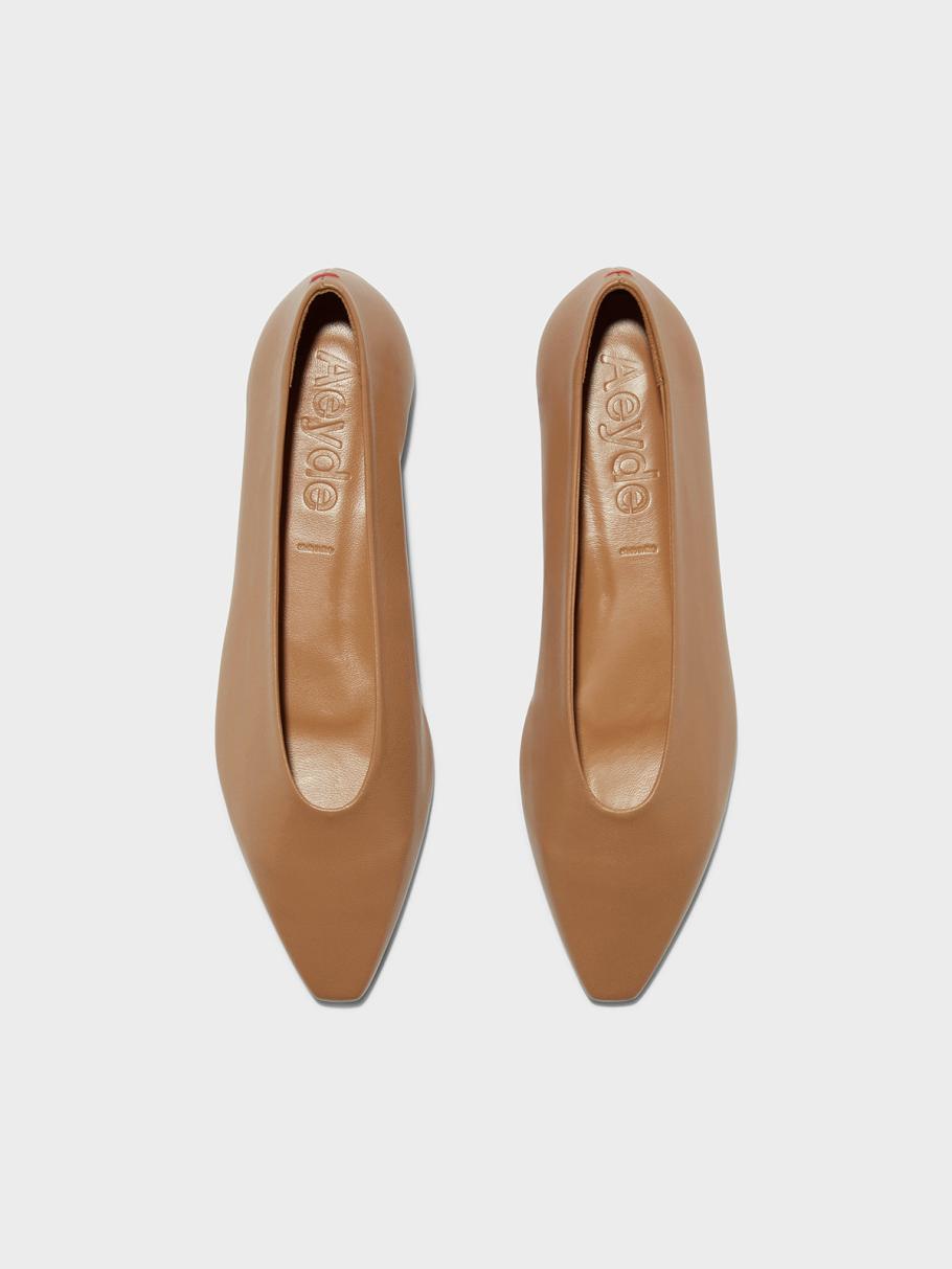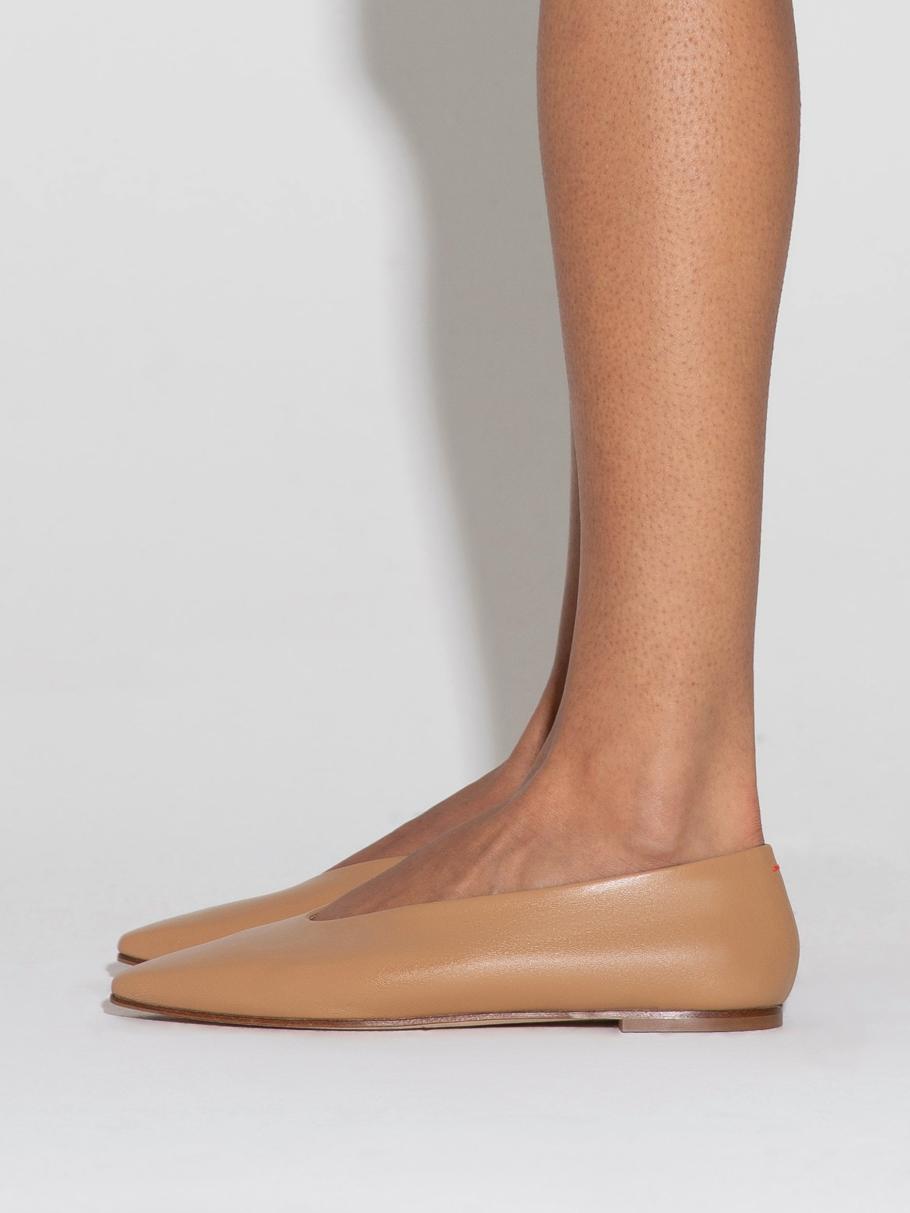 Aeyde’s Betty ballerina flats are sleek and simple flats that go with everything. They have a comfortable, close fit due to the craftsmanship and subtle squared-off toes.