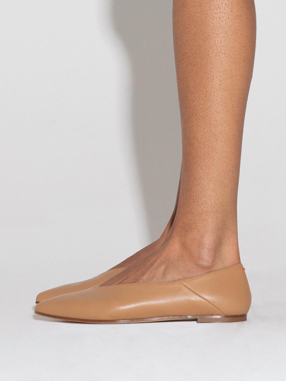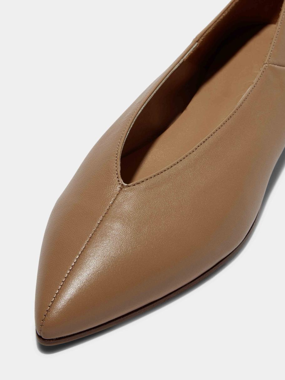 Moa are the ballet flats defined by their stitched seams and angular toes. This style, crafted from soft nappa leather, has high vamps that lend a point of interest to the bridges of the feet.