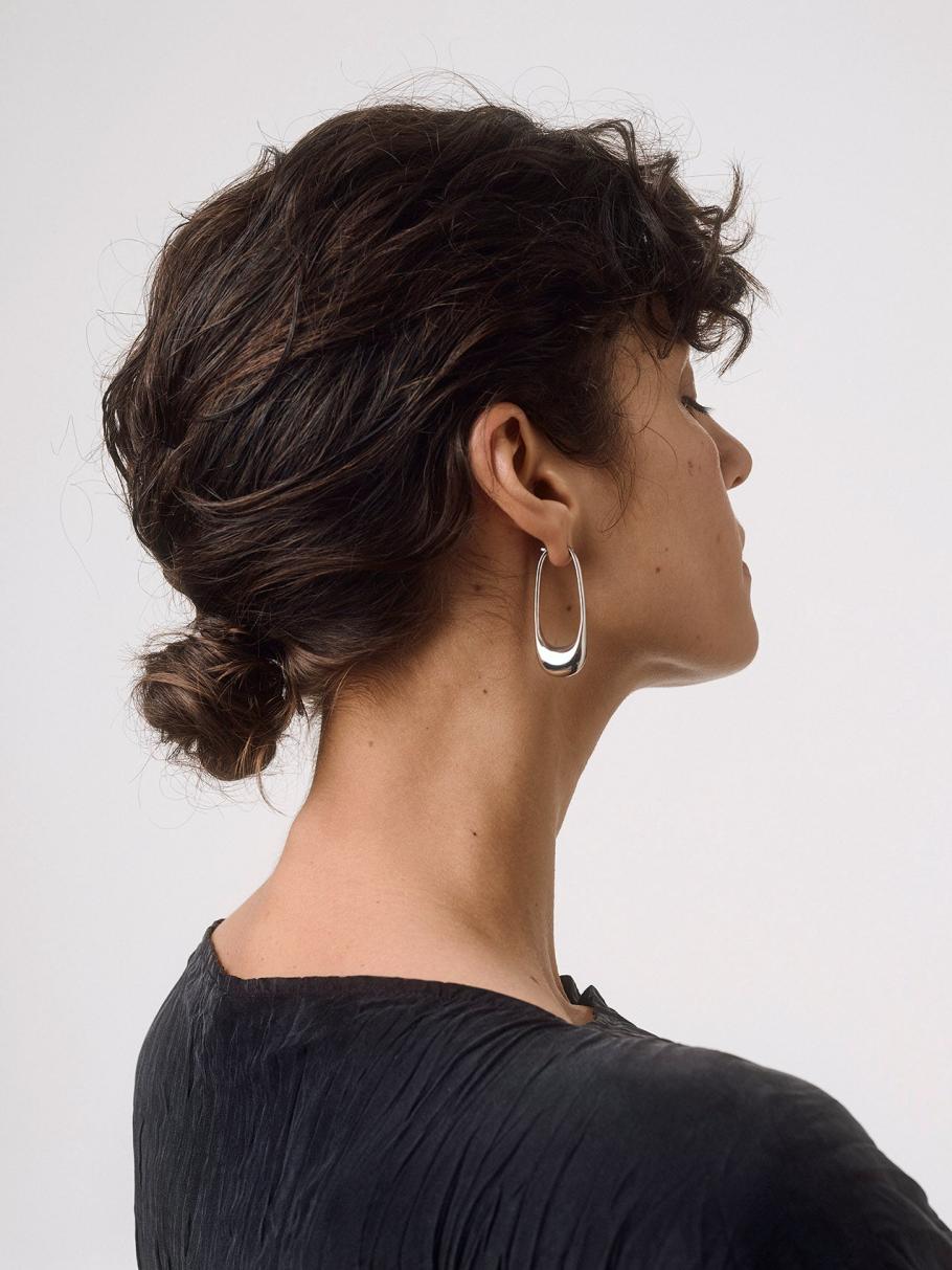 Eleanora are oversized, contemporary hoop earrings that balance slender proportions with sculptural bases.