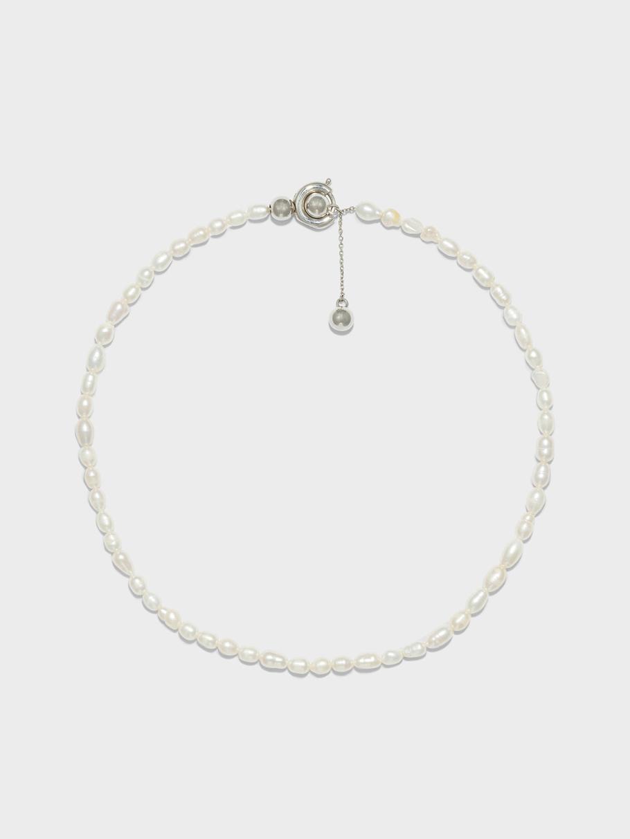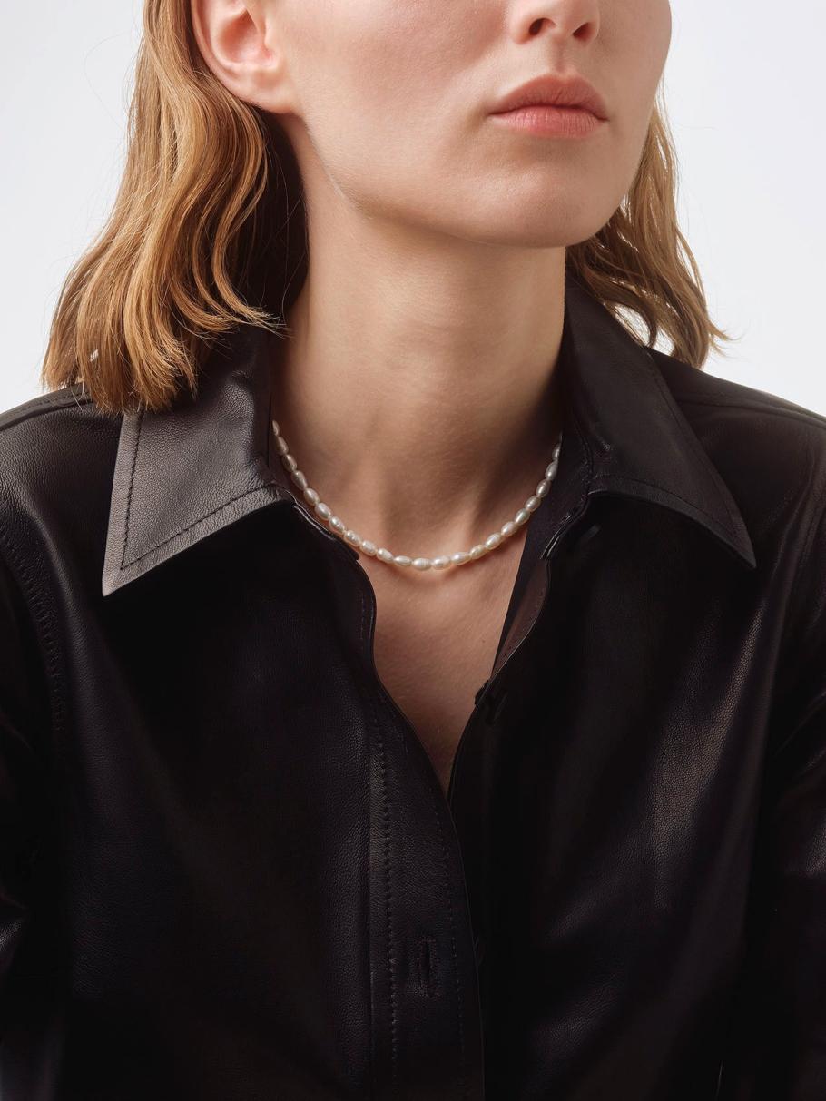 Part of the Pearl Capsule, Aeyde’s Saylor necklace is strung with Keshi pearls made from solid nacre, which is renowned for its remarkable luster. It’s fitted with an adjustable silver palladium-plated spring-ring closure.