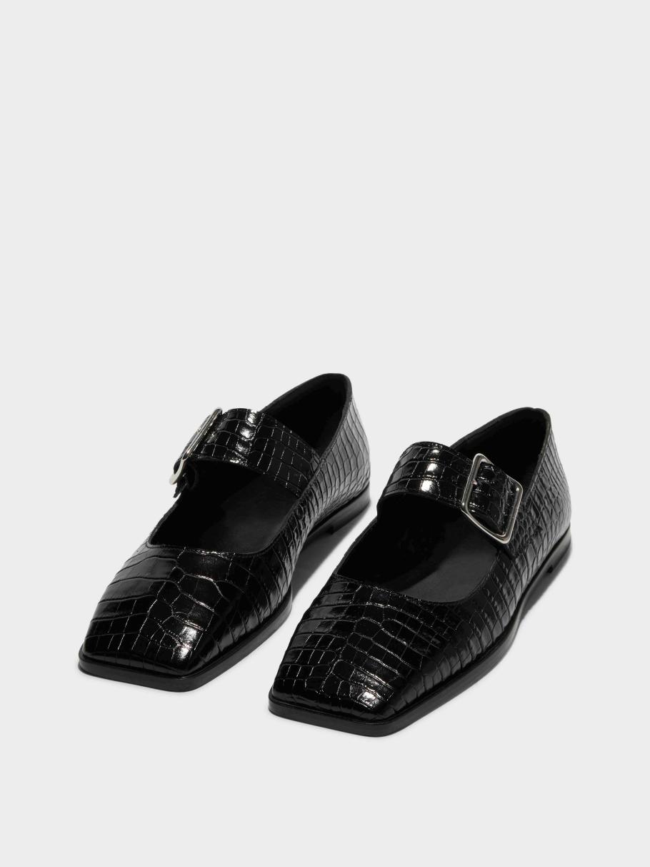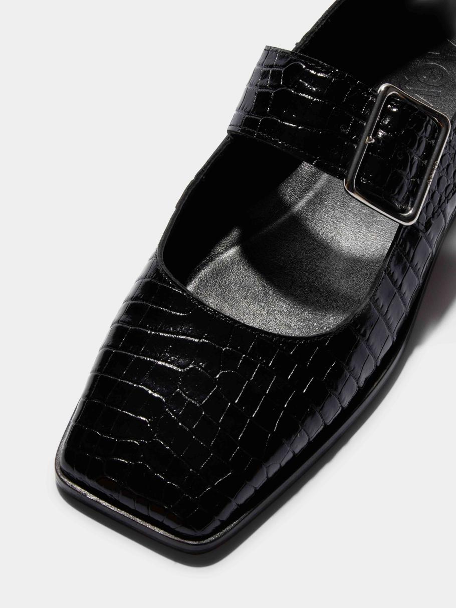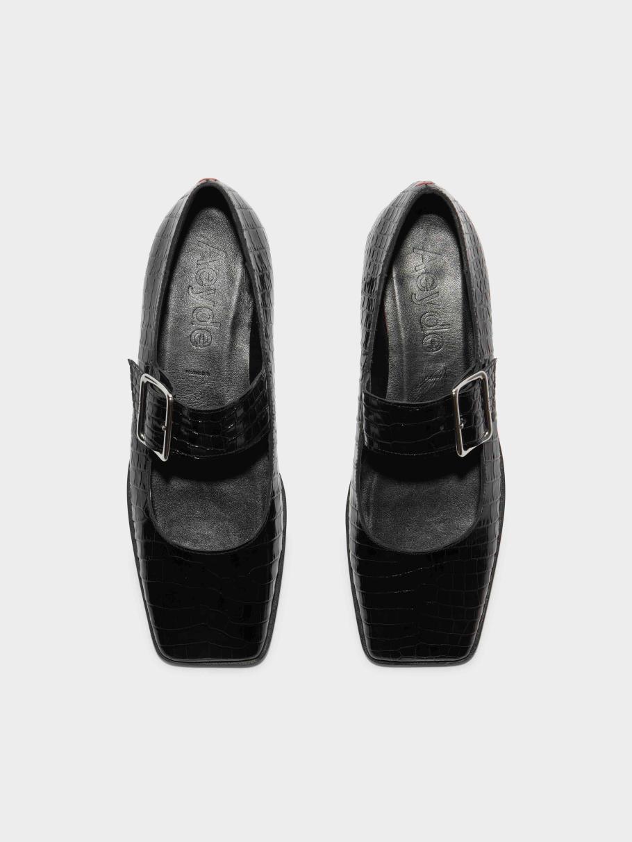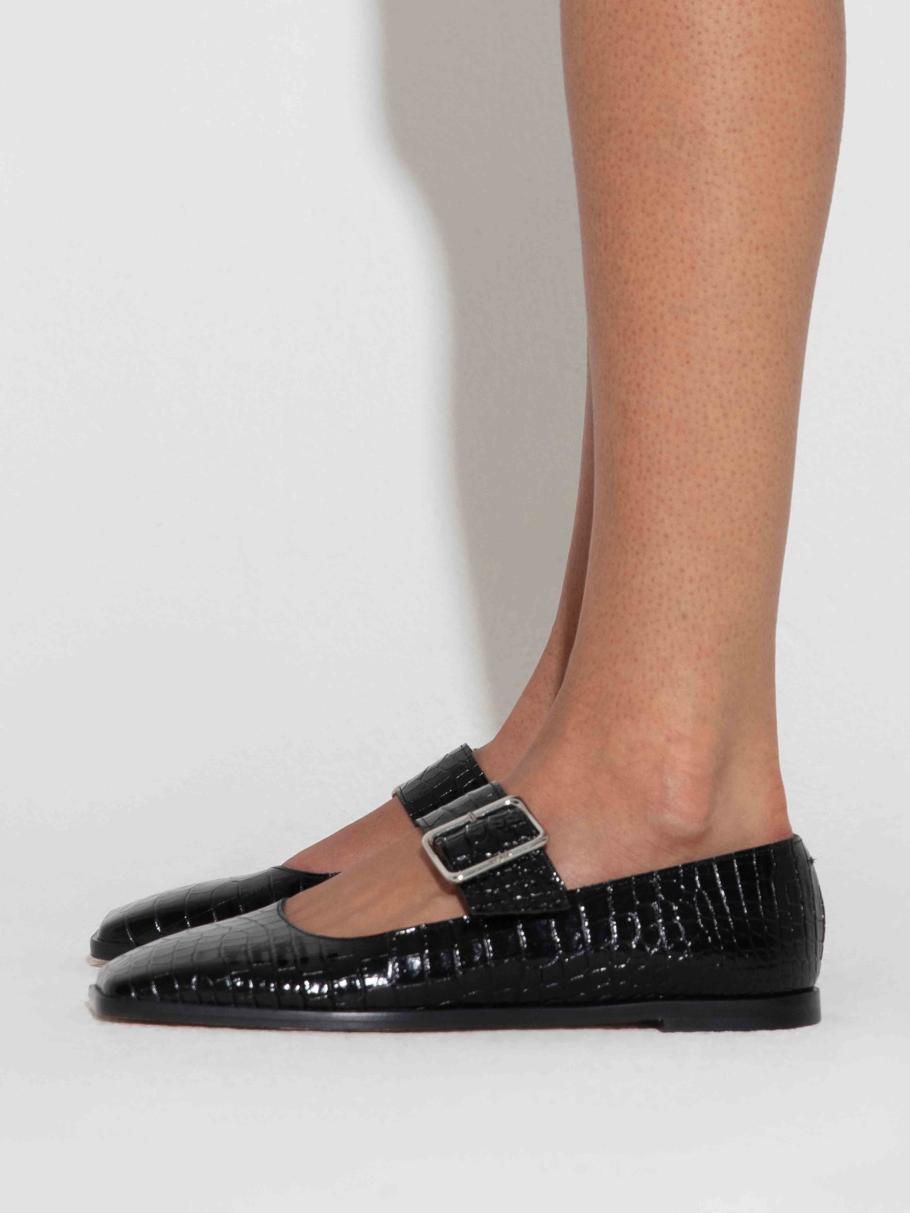 With Sunny, Aeyde reconfigures signature Mary-Jane silhouettes. This design borrows Thekla’s straps and hardware and applies them to this trans-seasonal style, featuring broad square toes and chic croc-effect calfskin leather.